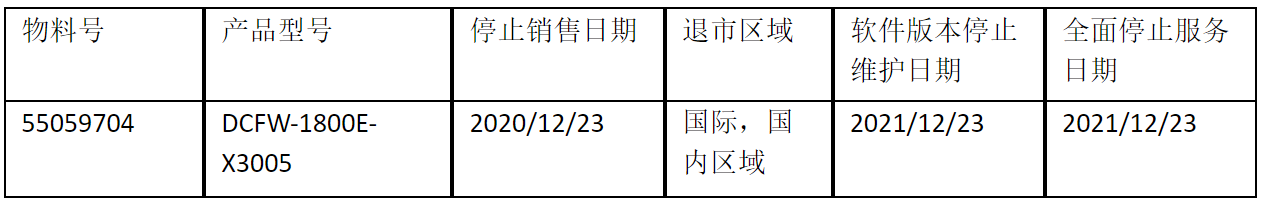 北京富联娱乐官网数码云科信息技术有限公司正式通知您, 以上DCFW-1800E-X3005下一代防火墙(55059704)将于20201223号停止接收新的订单(具体日期见上表),不再供货。给您带来的不便,敬请原谅。